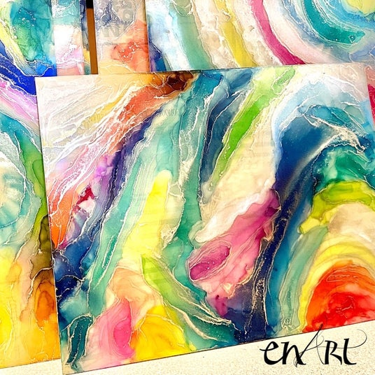 アルコールインクアートとアクリルが融合した雑貨を製作。