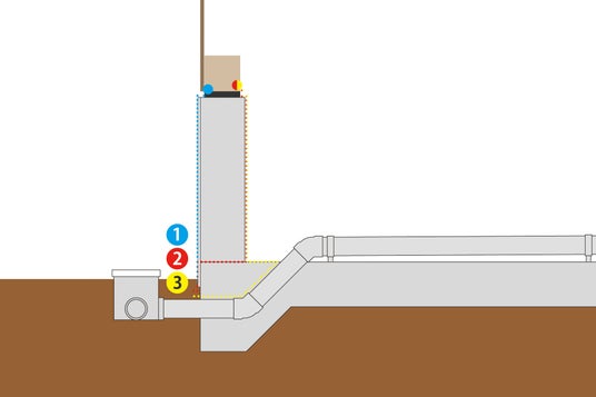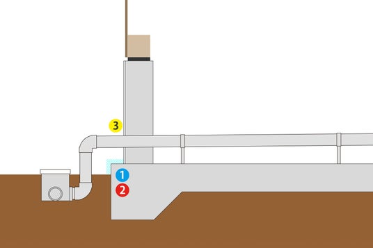配管と基礎との接続部が高い位置に設けられると、接続部はシロアリが好まない日の当たる乾いた環境となるほか、地面からのびる蟻道の発見が容易になります。