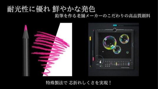 黒い紙にも鮮やかに発色。耐光性・耐水性に優れ、特殊製法で芯折れしにくい