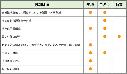 一方で、包装紙の分野に目を向けてみると、環境に配慮された様々なマテリアルは提供されていますが、扱いにくさやコスト面から、却って環境負荷を高めてしまうエコ・ジレンマがありました。包装紙はグラビア印刷で刷るケースが多く、希釈溶剤やCO2の大量排出など、印刷方法によっても環境への負荷があります。