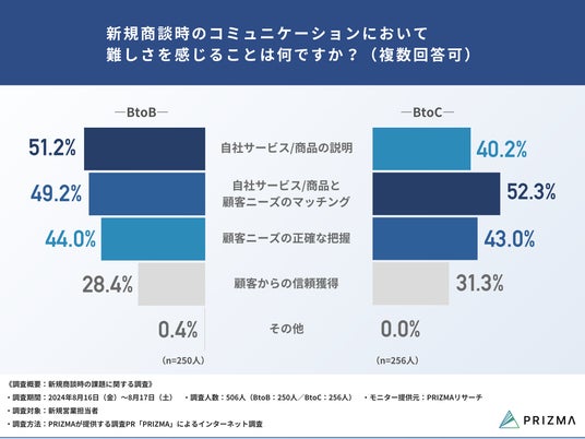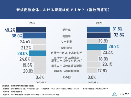 今回、株式会社PRIZMA(https://www.prizma-link.com/press)は新規営業担当者(BtoB/BtoC)506名を対象に、「新規商談時の課題に関する調査」を実施しました。