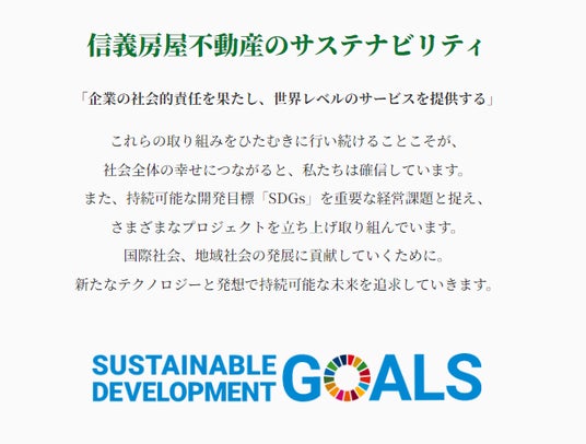 「信義房屋不動産」の社名の読み方や、当社の強み・独自性を親しみやすく伝える内容です。