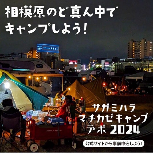 3日間限定のキャンプサイト『sagamihara MACHI-KAZE camp depot』相模綜合補給廠一部返還地を会場とする、潤水都市さがみはらフェスタ会場の東側がキャンプサイトとなります。 普段はキャンプできない場所で、家族とゆっくりキャンプするという非日常的な経験が味わえます!指定されたエリア内に自家用車やキャンピングカーを乗り入れて、キャンプやバーベキューができるプランです。1区画:7m×7m