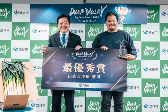 埼玉県深谷市(市長:小島 進)は、日本全国が抱える農業課題の解決を目的に実施したビジネスコンテスト「DEEP VALLEY Agritech※ Award 2024」の各賞受賞者を、2024年12月18日(水)に深谷市役所で開催した授賞セレモニーで発表しました。