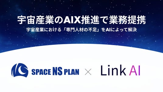 株式会社Link AI(本社:東京都港区、代表取締役:安東 竜平、以下Link AI)とスペースNSプラン、株式会社(本社:神奈川県横浜市緑区、代表取締役:鈴木 直志、以下スペースNSプラン)は、宇宙業界におけるAIトランスフォーメーション(AIX)の推進に向けて、業務提携を締結したことをお知らせいたします。