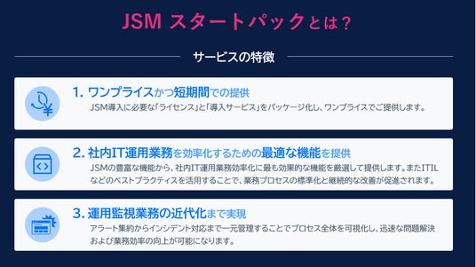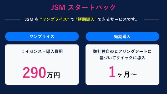 JSM導入に必要な「ライセンス」と「導入サービス」をパッケージ化し、ワンプライスでご提供します。