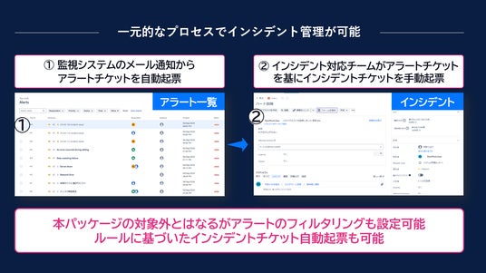 アラート集約からインシデント対応まで一元管理することでプロセス全体を可視化し、迅速な問題解決および業務効率の向上が可能になります。