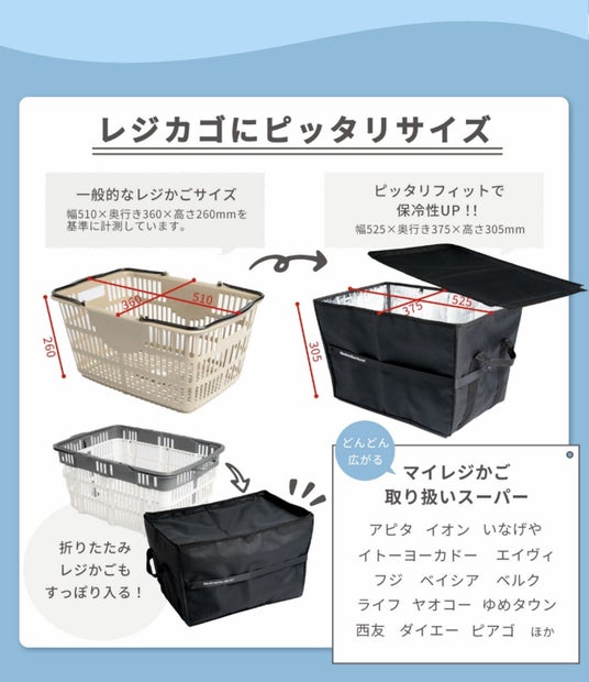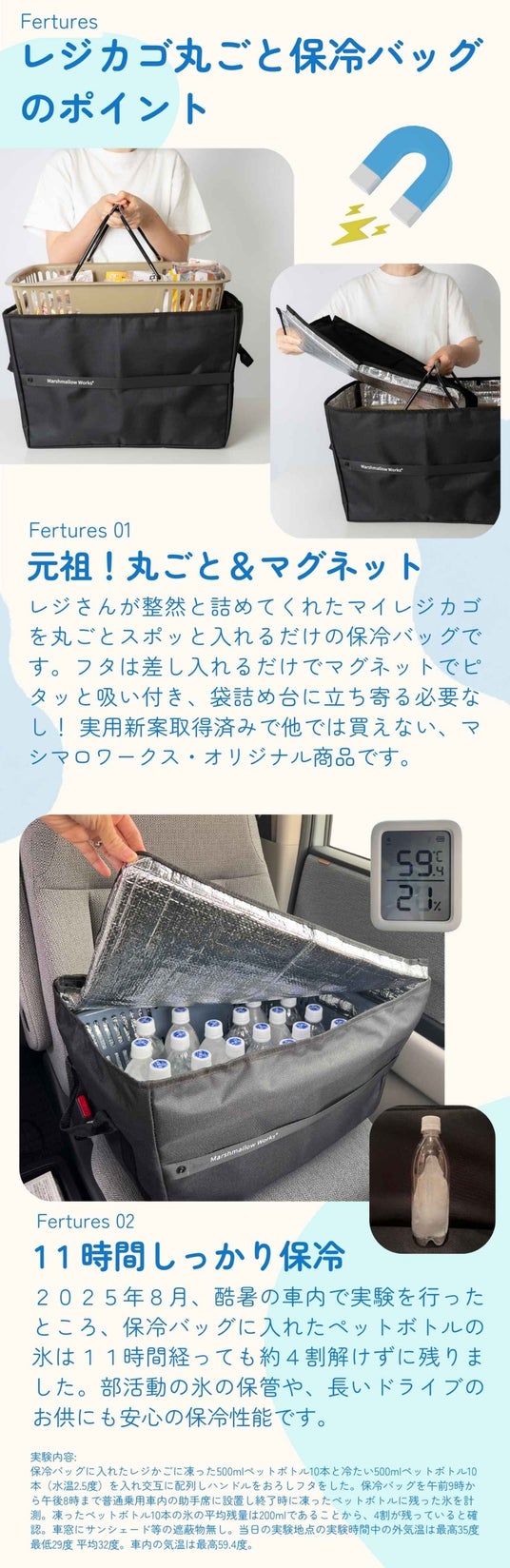 会計後の「詰め替え」不要!マグネットのフタで時短を叶えるレジカゴ丸ごと保冷バッグ