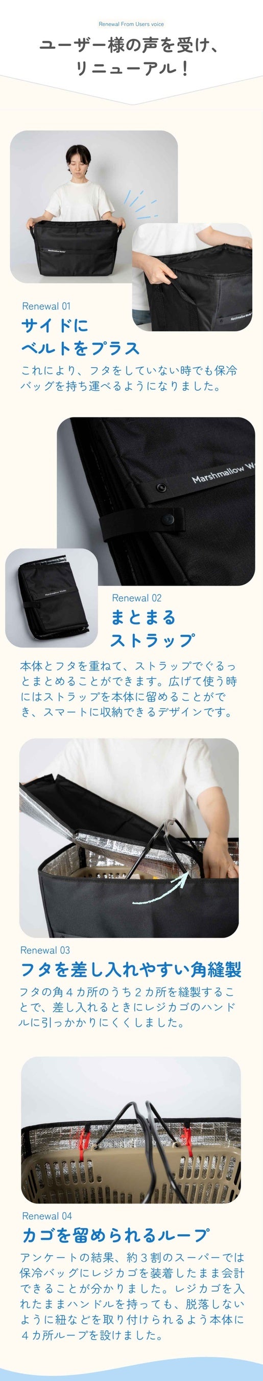 マシマロワークス(所在地:東京都港区、代表:井出 葵)は、累計販売数量18,000個を突破した人気商品「レジカゴ丸ごと保冷バッグ Skip’n Skip」シリーズの新製品