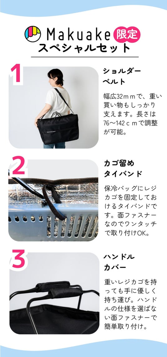 「レジカゴ丸ごと保冷バッグ Skip’n Skip ポータブル+」は、Makuake限定セットとして先行販売されます。