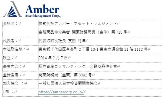 金融商品仲介業者の商号 株式会社アンバー・アセット・マネジメント