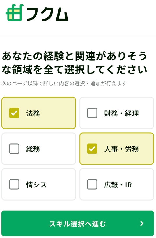 マイページでは、利用者自身のスキルの編集だけでなく、希望条件や経歴も簡単に入力でき、案件のスカウトをより受け取りやすくなります。フクムの利用開始時と同様に、選択肢から選ぶだけなので手軽に編集できます。