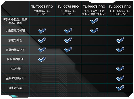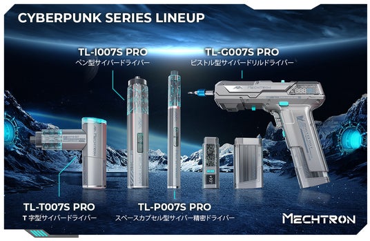 MECHTRON CYBERPUNK SERIESはSFの要素と電動ドライバーの機能が融合されており 4 つのモデルで構成されており、ツールを使い分けることであらゆる製品に対して作業を行うことができます。
