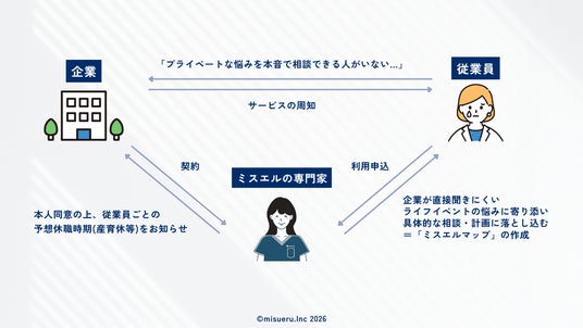 株式会社ミスエル(兵庫県神戸市、代表取締役:濱野真凪、以下「ミスエル」)は、働く女性がライフとキャリアの両立を叶えるため、具体的な健康管理やキャリアプランの計画立案から実行までを伴走する「ミスエルマップ」を提供しています。