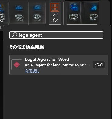 Microsoft Wordの「ホームタブ」における「アドイン」から「Legal Agent」を検索し、「追加」するだけです。