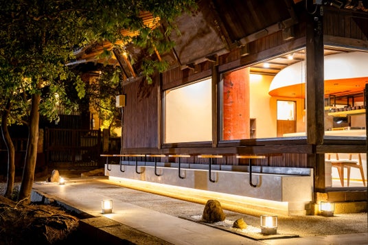 歴史と現代が融合する空間歴史的な建物の屋根や骨格を最大限に活かした造りが特徴。建物に残るかつての千社札や額からは歴史の息吹が感じられます。