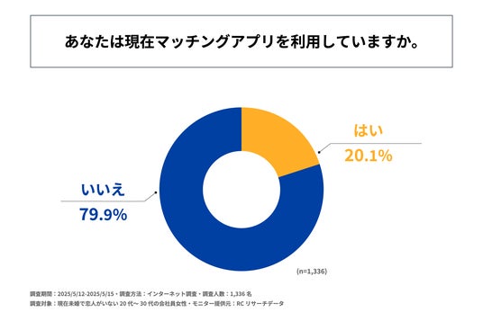現在未婚で恋人がいない20代~30代の会社員女性の約2割が、マッチングアプリを利用している