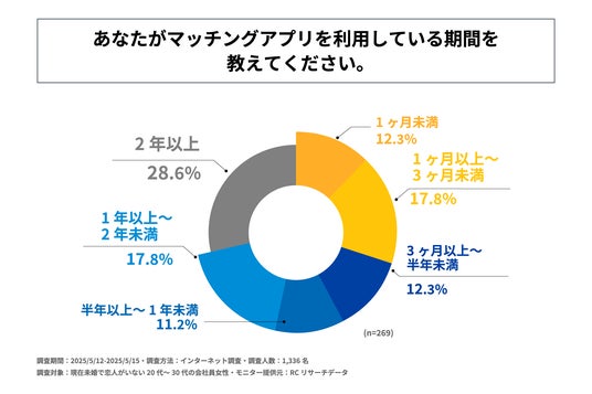 ・マッチングアプリを利用している期間は「2年以上」の人が最も多い