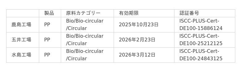 日本ポリプロ株式会社(本社:東京都千代田区、代表取締役社長:飯島 要)は、鹿島工場に続き、五井工場および水島工場において持続可能な製品の国際的な認証制度の一つであるISCC(International Sustainability and Carbon Certification:国際持続可能性カーボン認証)PLUS認証を取得しました。本認証はリサイクル原料やバイオマス原料などが、製品製造を含むサプライチェーン上で適切に管理されていることを担保するものです。