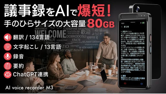 “録音・文字起こし・要約・翻訳”を一台で実現!多機能ボイスレコーダー【AI voice recorder M3】~高性能かつ高コスパ。会議やインタビュー、語学学習、海外旅行に最適~