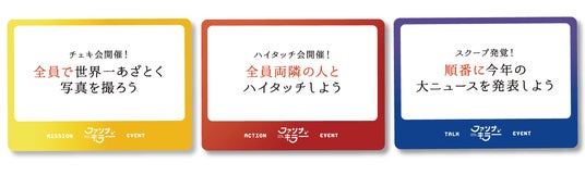 →全員で挑戦するミッションカード、動きが発生するアクションカード、話がはずむトークカードと厳選されたイベントカードが30枚