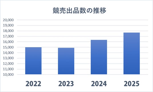 再出品を含むトータル出品数は17,684件で、前年比1,333件の増加となりました。