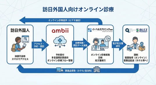 イーヘルスクリニック新宿院(東京都新宿区)は、多言語対応医療予約プラットフォーム「Ambii」が新たに提供を開始したオンライン診療機能を活用し、訪日外国人(インバウンド)患者向けのオンライン診療体制を強化いたしました。本取り組みにより、来院が難しい旅行者や短期滞在者も、宿泊先や滞在先から医師の診察を受けることができるようになります。