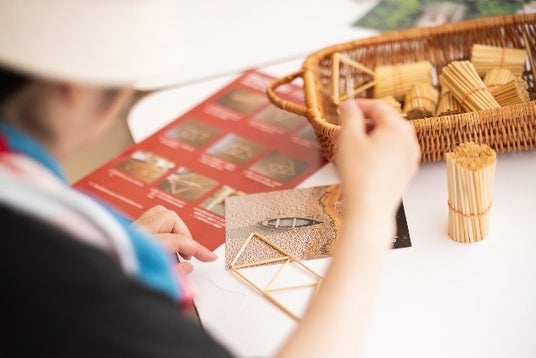 当日は、ラトビアの伝統的なオーナメント「プズリ作り」を体験できるワークショップが開催されました。プズリは、古くからラトビアに伝わる藁細工で、正八面体をベースにした整った立体構造を持ち、天と地・過去現在未来・四季など、自然の巡りやつながりを表していると言われています。来場者の皆さまには、実際に藁を使ってプズリを制作する体験を通じて、自然とともにあるラトビアの暮らしの一端に触れていただきました。