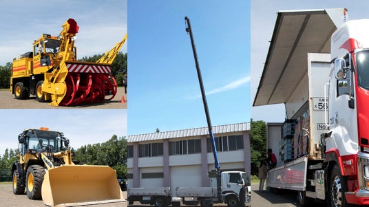 - 車種:ポールトレーラー、冷凍車、ユニック車、クレーン車、ウイング車、ビックロータリー、タイヤショベル 等