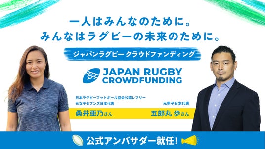 公益財団法人日本ラグビーフットボール協会(以下「JRFU」、会長:土田 雅人、東京都港区)は、国内最大級のクラウドファンディングプラットフォームを運営する株式会社CAMPFIRE(以下「CAMPFIRE」、代表取締役:中島 真、本社:東京都渋谷区)と提携し、ラグビー領域に特化した「JAPAN RUGBY CROWDFUNDING」サービスを2025年7月9日(水)より開始いたしますので、お知らせいたします。また、本サービスの公式アンバサダーに元ラグビー日本代表の五郎丸 歩さん、元女子セブンズ日本代表でJRFU公認レフリーの桑井 亜乃さんが就任いたしましたので併せてお知らせいたします。