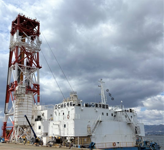 海上土木工事において、A重油を燃料とする作業船がCO2の主な排出源となっており、作業船運転時のCO2排出量をいかに削減していくかが、かねてより課題となっておりました。東洋建設ではバイオ燃料を使用することがCO2の排出削減に有効な手段であると捉え、作業船「DCM6号船」(深層混合処理船)でバイオ燃料を使用し、機器類への影響等を検証したうえで今後も海上土木工事におけるCO2排出削減を推進します。