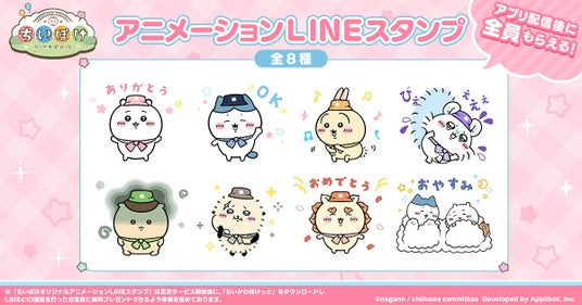 ※「ちいぽけオリジナルLINEスタンプ」は正式サービス開始後に、『ちいかわぽけっと』をダウンロードしLINEとID連携を行った方全員に無料プレゼントできるよう準備を進めております。