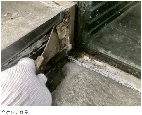 続いて、劣化したシーリング材の除去(ケレン)や、ひび割れの補修を実施しました。