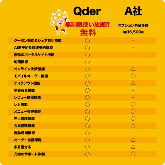 Qderシステム vs一般的なモバイルオーダー