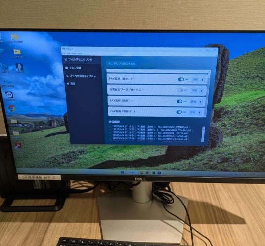 「路歩通登 AI子」と名付けられたPCから、デスクトップアプリがFAXファイルを自動アップロード