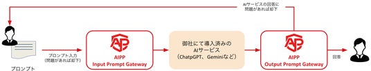 プロンプト入力をリアルタイム解析し、個人情報や機密語句を含む場合は遮断。