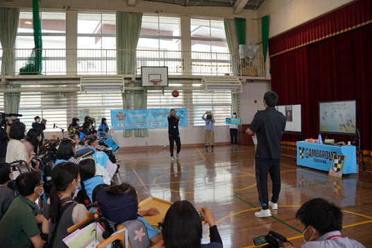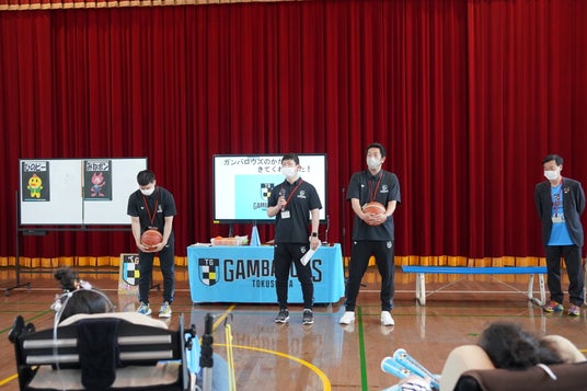 徳島ガンバロウズは5月15日(木)にフレンドリータウンである小松島市との連携交流事業に基づき、徳島県立ひのみね支援学校(小松島市)において連携交流授業を開催いたしましたのでお知らせします。