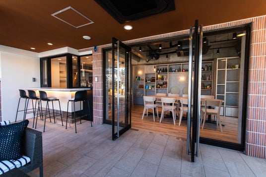 - JR西千葉駅南口を出て、マロニエ通りを京成千葉線の線路まで進んだ場所にあるシェアキッチン、レンタルスペースです。店内はカウンター席とテーブル席があり洗練されたカジュアルな空間になっています。テラスにもカウンター席とソファ席があり、外の空気を感じながら気持ちよく過ごせる空間になっています。