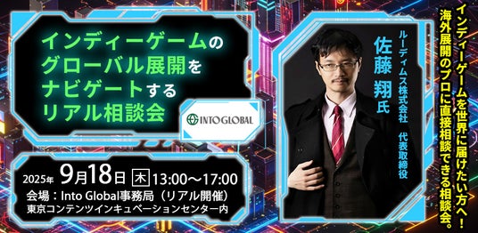 株式会社ツクリエ(本社:東京都千代田区 代表取締役:鈴木英樹 以下、ツクリエ)が東京都から運営受託する「Into Global~令和7年度東京都コンテンツ産業海外展開課題解決プログラム~(以下、Into Global)」はインディーゲームのグローバル展開をナビゲートするリアル相談会を9月18日(木)に人数限定で無料開催いたします。