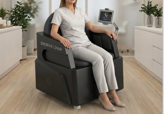 EMDRIVE CHAIR(R)は、服を着たまま座るだけで、高出力電磁刺激(Electro Magnetic Stimulation, EMS)により、**腰部多裂筋・腸腰筋・骨盤底筋などの深層筋(インナーマッスル)**へ非侵襲的にアプローチするリハビリ支援チェアです。