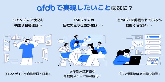 解決: afdbがSEOメディアを自動収集し、案件ごとの出稿状況を一覧化