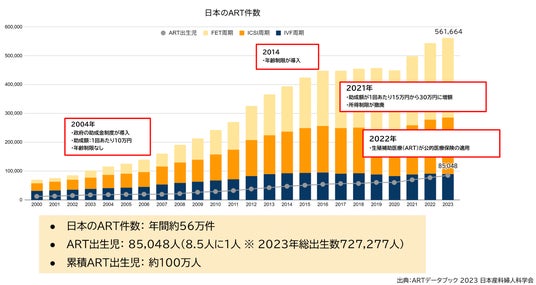 一方、日本ではすでに 出生児の8.5人に1人がART(体外受精などの高度生殖医療、以下「ART」)によって誕生しています(※3)。ARTは、日本の出生を支える重要な医療の一つとなっています。