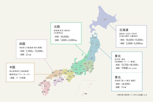 岩手県(16,500円/t)に見られる、地域貢献ストーリーやPR支援を付加した「高付加価値型」が登場。一方で、再エネ由来の安価なクレジット(宮城県:6,466円/t)も存在し、用途に応じた使い分けが進んでいます。
