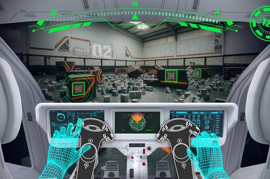 XiGAのコンセプトは、「アナログな物理」と「デジタルなロボティクス」が衝突する非対称型PvP体験。VRゴーグルを装着してモーションチェアに搭乗し、4脚ロボット「Unitree GO2」を実際に操縦。ナーフ銃を装備したロボットで、参加者がその場でスポンジブロックを積み上げた「物理要塞」を突破しにいきます。
