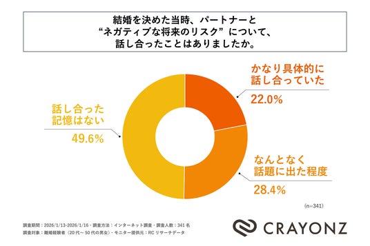 離婚経験者の約8割が、結婚を決めた当時、パートナーと“ネガティブな将来のリスク”を具体的に話し合っていない