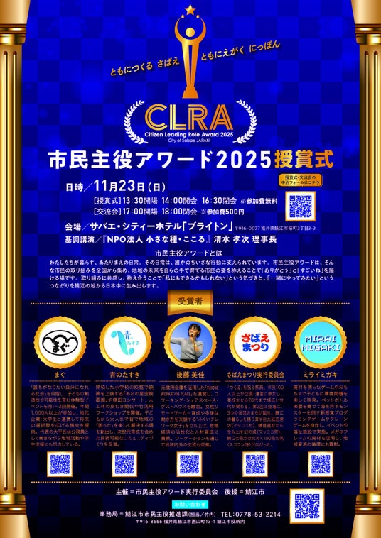 主催=市民主役アワード実行委員会 後援=鯖江市