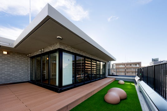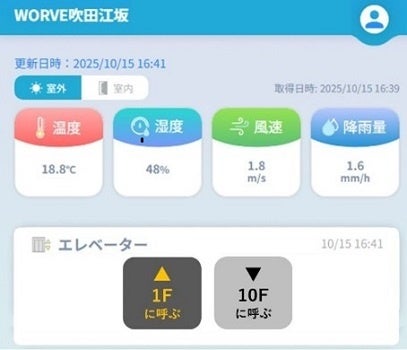 本物件ではICT設備やサービスとして、エントランス・専有部の顔認証システムのほか、エレベーターホールのモニター天気や共用部の利用状況を確認できます。入居者向けアプリ「まいりむ」では室内外の温度確認や、エレベーター居住階待機など機能を利用できます。また、居住者が集中したいときに利用できる半個室ワークスペースや、休憩開放感のあるテラスをご用意しました。