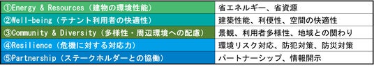 DBJ認証は「環境・社会への配慮」がなされた不動産とその不動産を所有・運営する事業者を支援する取り組みとして、2011年4月に日本政策投資銀行によって創設された認証制度です。建物の環境性能や入居者の快適性、多様性への配慮、防犯・防災といった危機への対応力などが総合的に評価され、社会に求められる不動産を認証する制度になります。