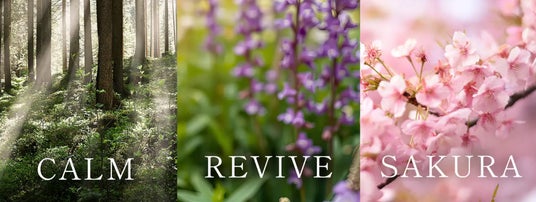 本プロジェクトでは、ディフューザーとあわせて使用できるオリジナルアロマオイル3種(CALM/REVIVE/SAKURA)を展開。