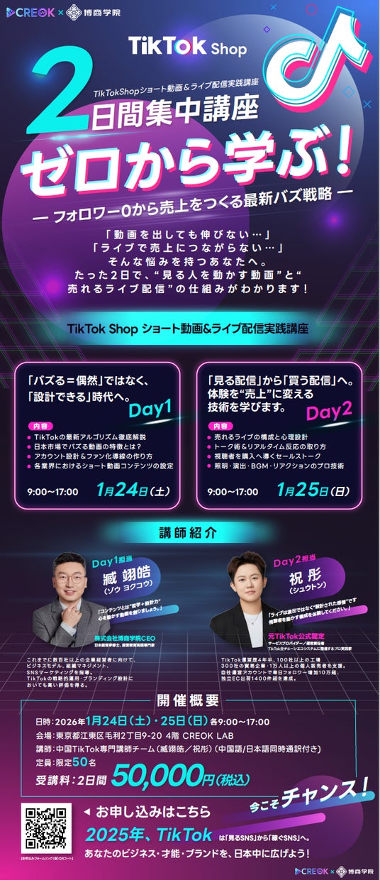 本講座は、これまでTikTok本社および株式会社博商学院との協業を通じて培ってきた